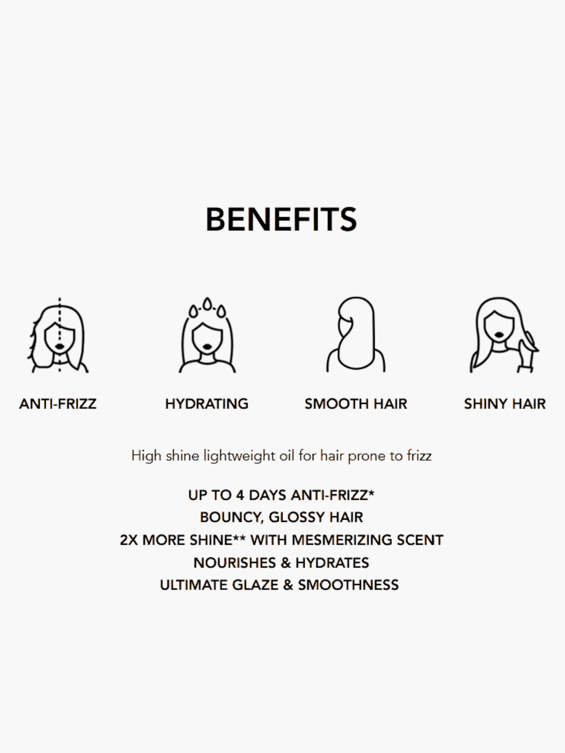 - Tames frizz and smooths rough strands